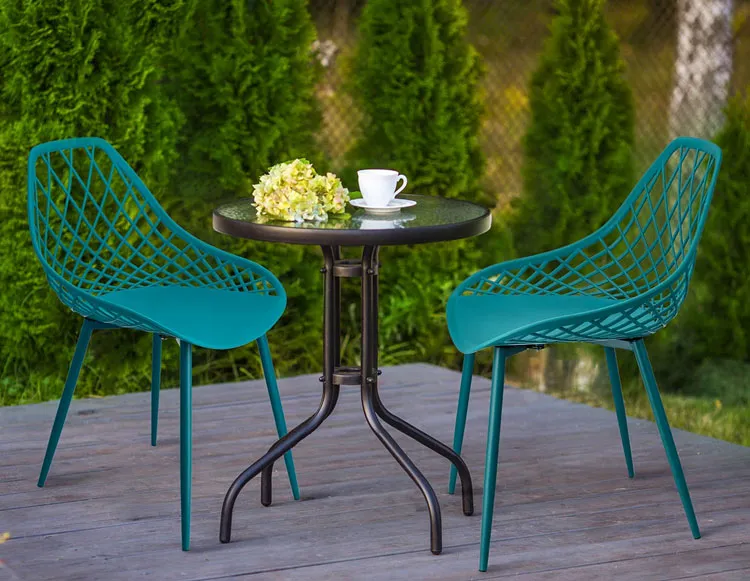 Taras z wykorzystaniem nowoczesnego ażurowego krzesła morski niebieski Blake 5X