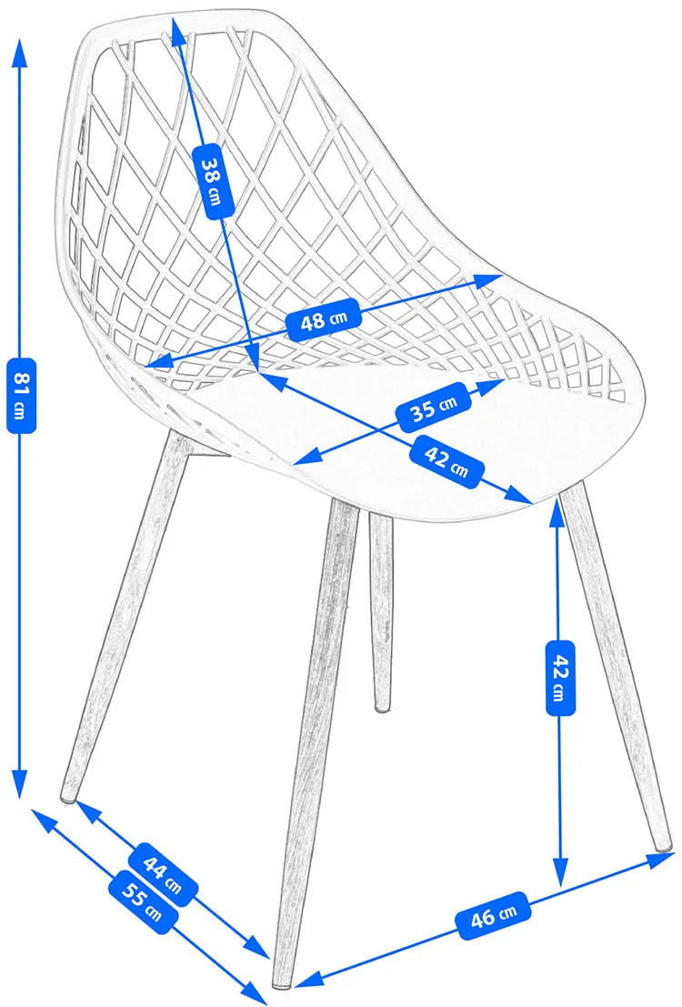 Infografika ażurowego metalowego krzesła morski niebieski Blake 5X