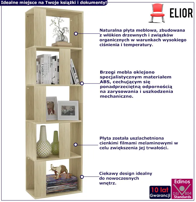 Dotyczy: Industrialny regał na książki z przegrodami przydymiony dąb - Cullen