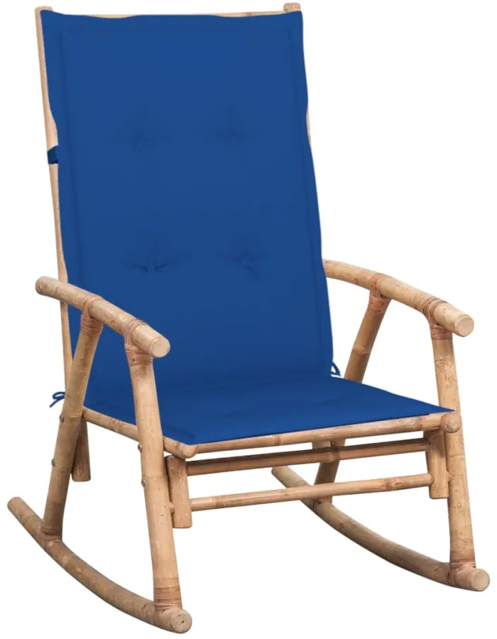 Dotyczy: Bujany fotel do ogrodu bambusowy z jasnoniebieską poduszką - Stella