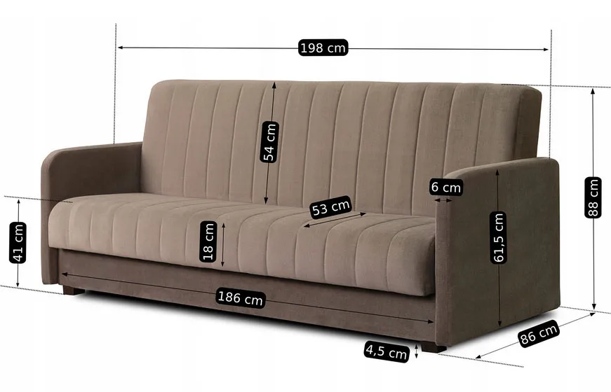 • Funkcja spania – dzięki rozkładanej konstrukcji sofa zamienia się w przestronne łóżko o powierzchni 140x200 cm – idealne na niespodziewanych gości.