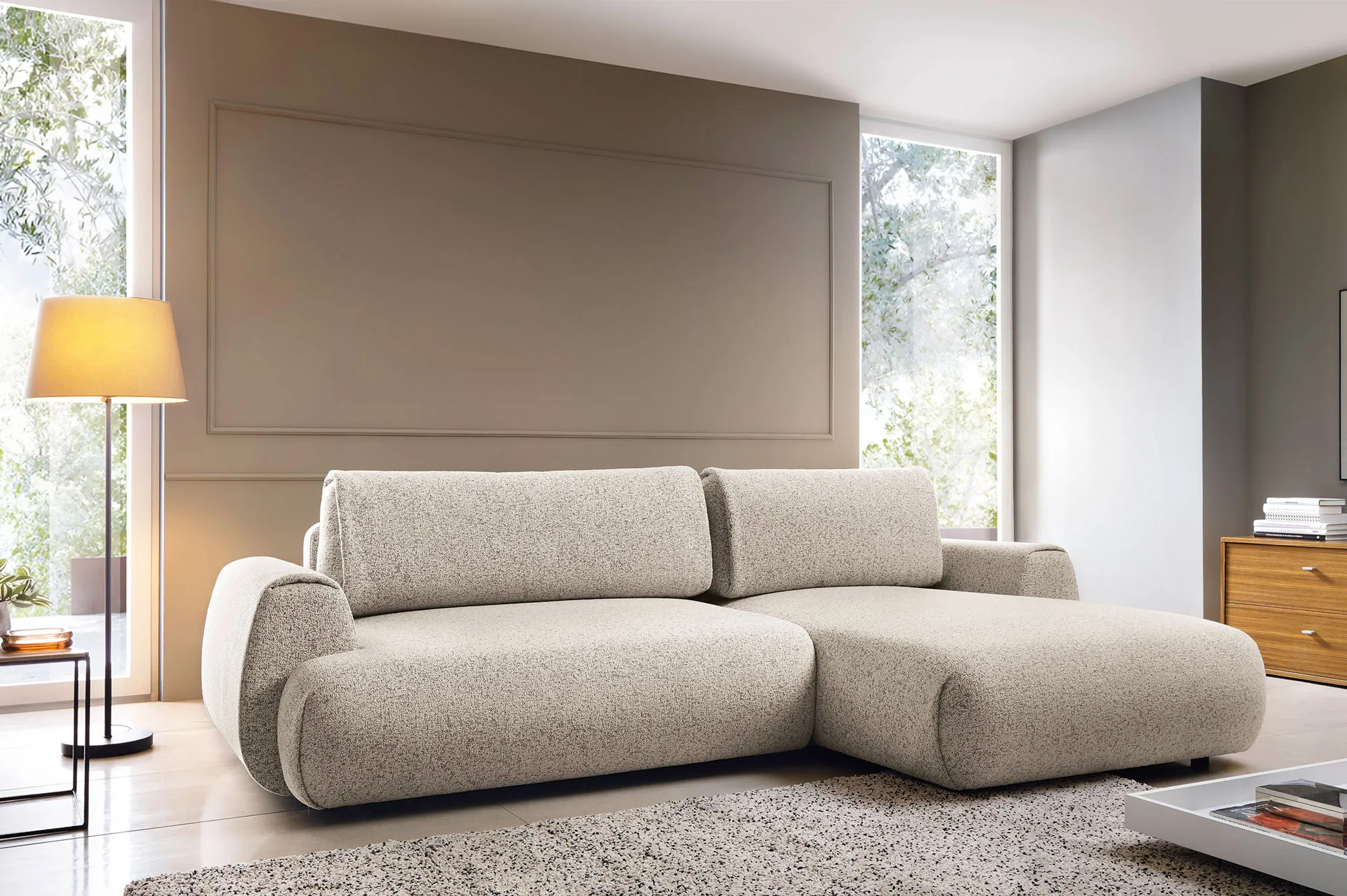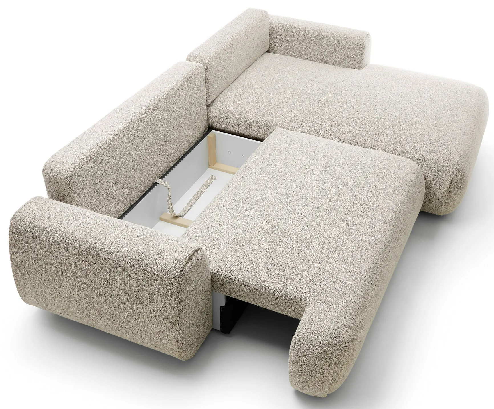 Beżowa melanżowa kanapa narożna z funkcją spania - Mezzia 3X