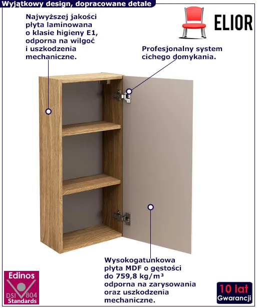 • Kolor: Beżowy. Sprawdź także inne wiszące szafki łazienkowe w sklepie Edinos.pl. Stwórz swój praktyczny zestaw mebli.