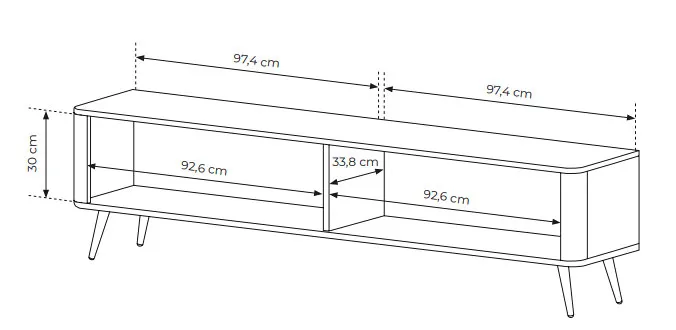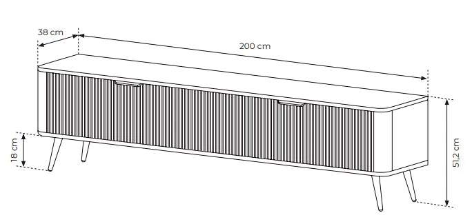 • szerokość 200 cm, wysokość 51,2 cm, głębokość 38 cm