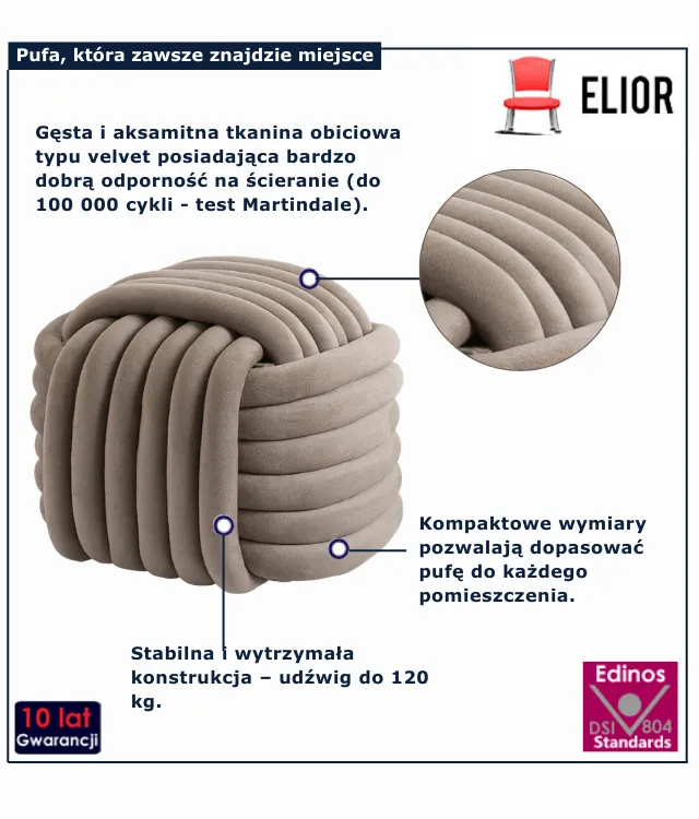Dotyczy: Szara nowoczesna pleciona pufa - Volox