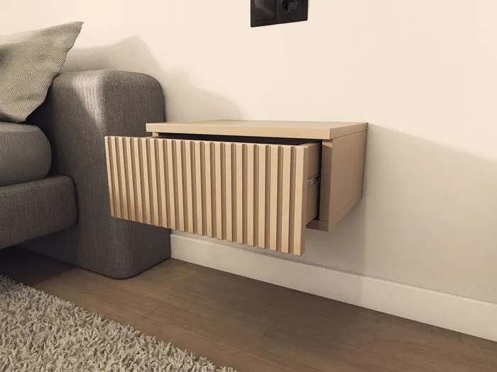 Dotyczy: Wisząca szafka nocna z lamelami czarny + naturalny - Falos