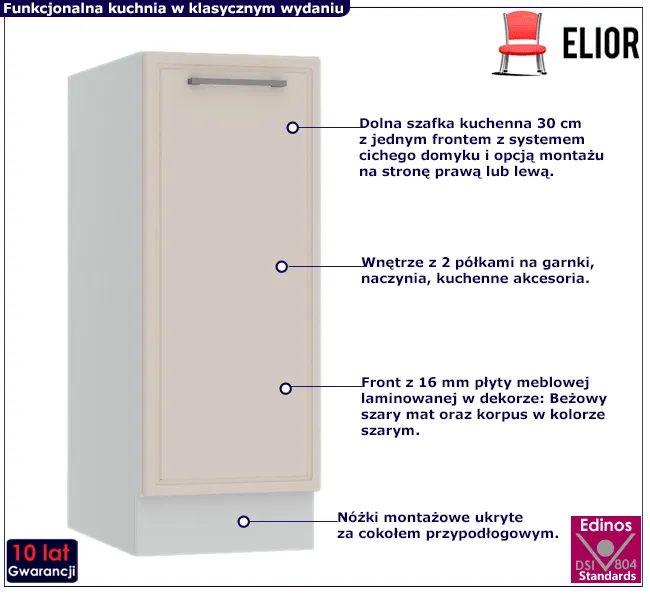 • Modny kolor: front: Beżowy szary mat, korpus: szary.