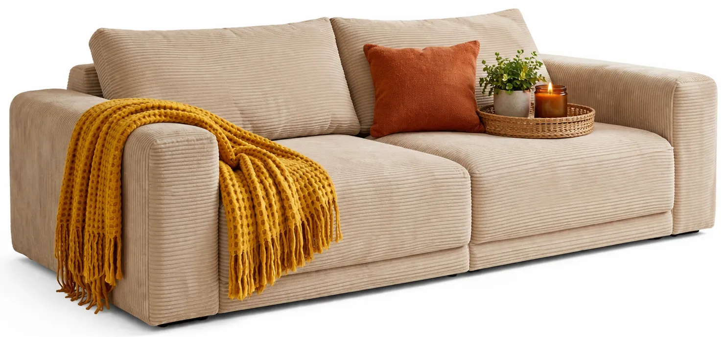 Beżowa sztruksowa kanapa do salonu nowoczesnego Dierra