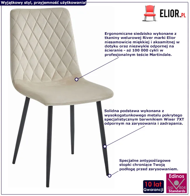 Dotyczy: Ciemnoszare metalowe pikowane krzesło welurowe - Orinos 4X