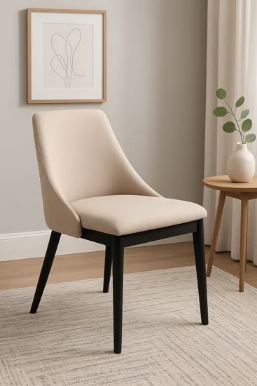 Beżowe krzesło tapicerowane z drewnianymi nogami - Bonno 4X