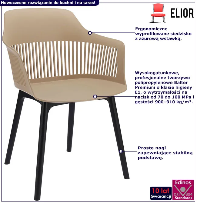 Infografika beżowego krzesła do stołu z ażurowym oparciem Niki 4X