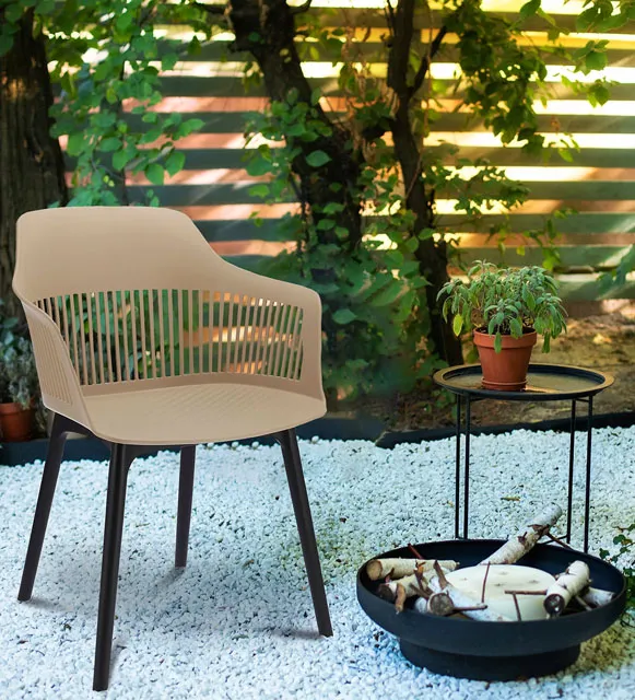 Taras z wykorzystaniem beżowego krzesła kuchennego Niki 4X