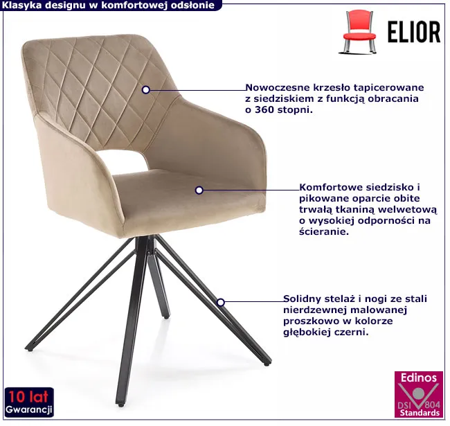 Dotyczy: Zielone tapicerowane welurowe krzesło obrotowe - Kendra