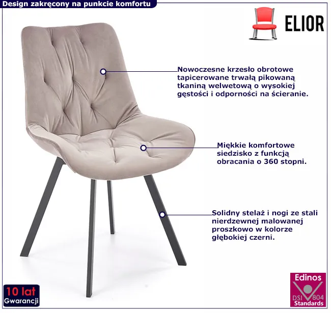 Dotyczy: Welurowe cynamonowe pikowane krzesło obrotowe - Levi