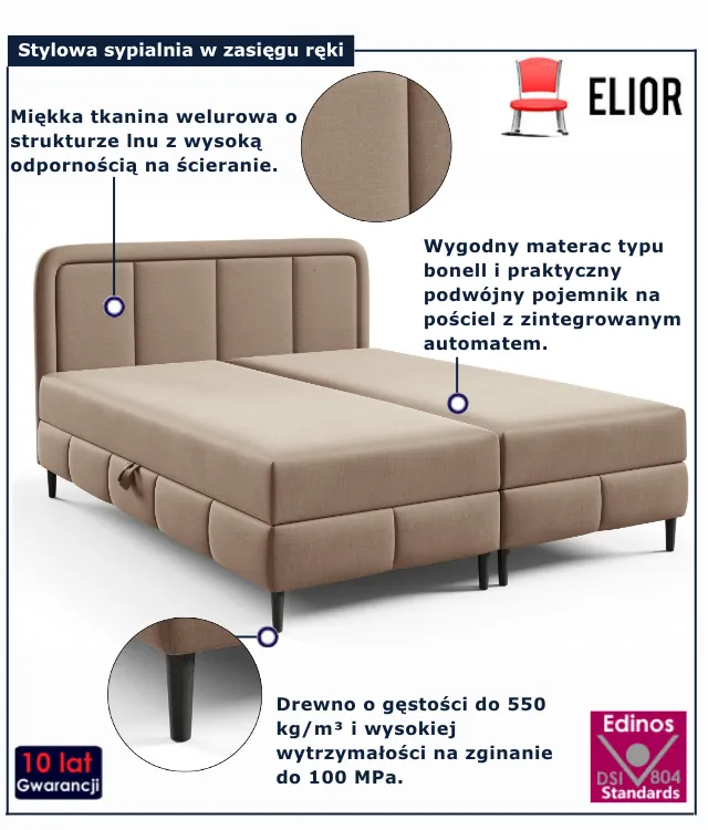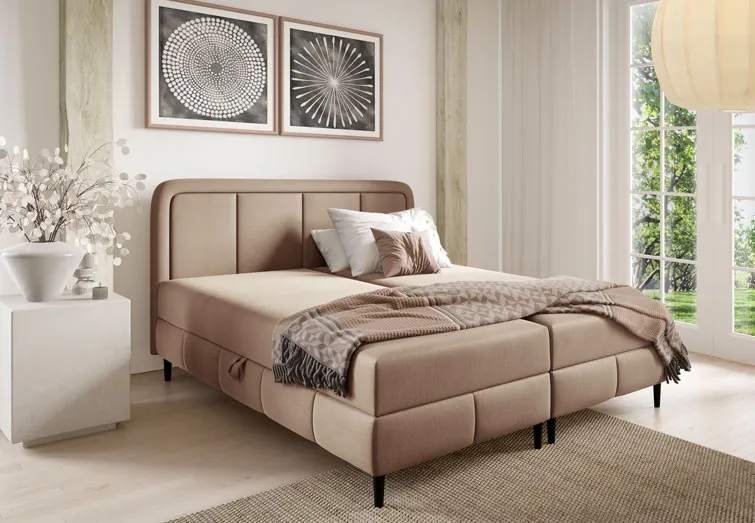 Dotyczy: Szare łóżko kontynentalne dwuosobowe z zagłówkiem Acianna - 5 rozmiarów