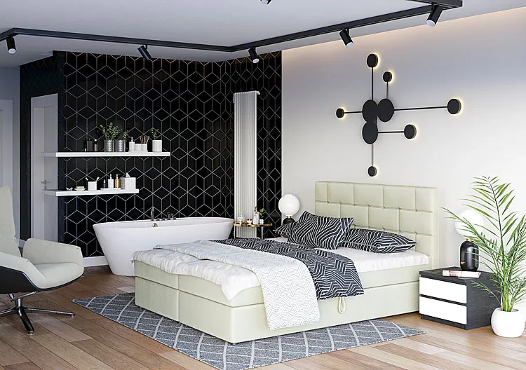 Wieczór. Odkładasz książkę na stolik nocny, gasisz światło i opierasz się o miękkie, tapicerowane wezgłowie. Czujesz, jak sypialnia zamienia się w Twoją prywatną strefę komfortu. Łóżko kontynentalne Wallaro marki Edinos Premium zostało zaprojektowane właśnie po to, aby każdy taki moment był pełen spokoju i wygody. Jego geometryczne przeszycia na wezgłowiu przyciągają wzrok i nadają wnętrzu elegancji, a wysoka bryła łóżka sprawia, że to właśnie ono staje się centralnym punktem całej aranżacji. Wallaro łączy estetykę z praktycznością – kryje w sobie pojemny schowek na pościel, który pozwala utrzymać porządek i zaoszczędzić miejsce w sypialni.