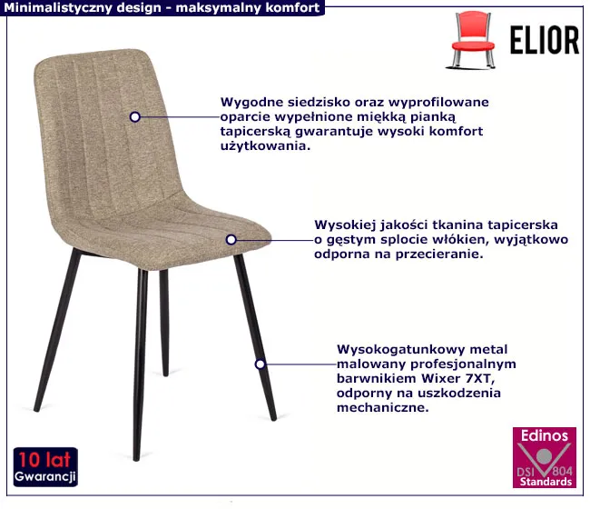 • tapicerka jest odporna na zabrudzenia, dzięki czemu krzesło sprawdzi się w kuchni i jadalni