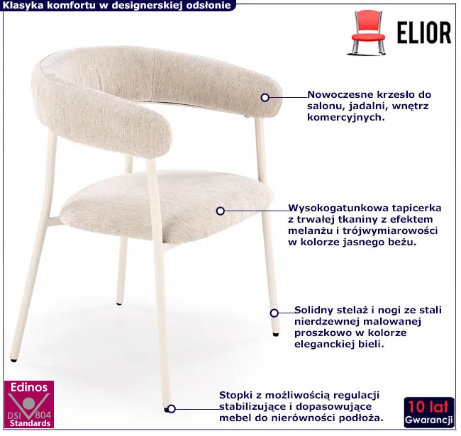 • Modny kolor: Beżowy. Kliknij w link i sprawdź także inne krzesła beżowe w sklepie Edinos.pl. Stwórz swój praktyczny zestaw mebli.