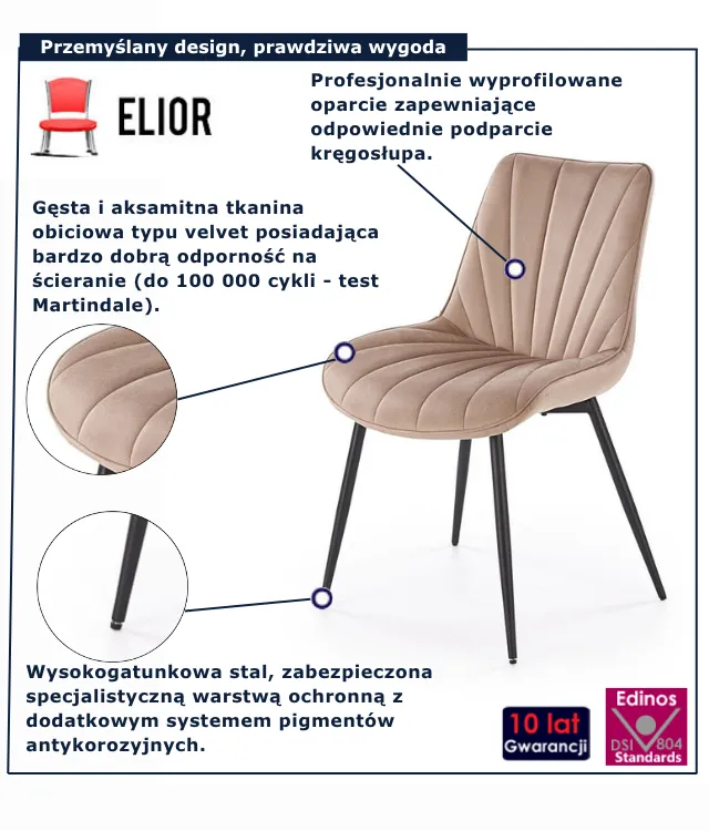 Krzesło Sovira marki Elior to mebel, który łączy funkcjonalność z elegancją w najczystszej postaci. Jeśli marzysz o siedzisku, które doda klasy Twojemu wnętrzu, a przy tym będzie naprawdę wygodne – właśnie je znalazłeś. Czy to nie dobry moment, by wprowadzić do swojego domu coś wyjątkowego? Krzesło Sovira marki Elior dostępne jest teraz w cenie 338 zł. Wybierz wygodę i styl – zamów już dziś!