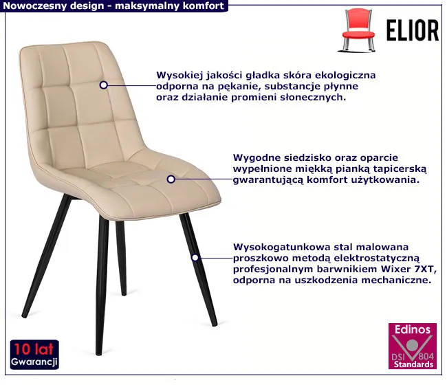 Beżowe nowoczesne krzesło z ekoskóry - Amofex