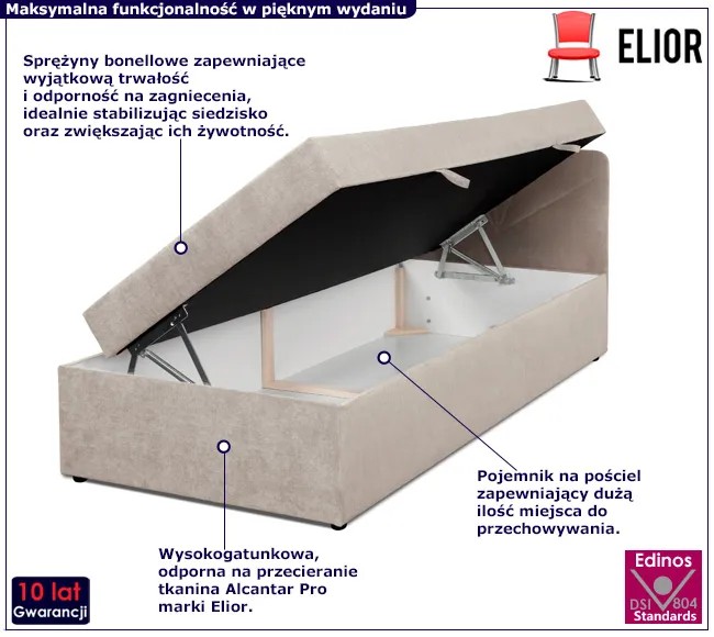 • Kolor: Beżowy. Kliknij w link i sprawdź także inne łóżka pikowane z zagłówkiem w sklepie Edinos.pl.
