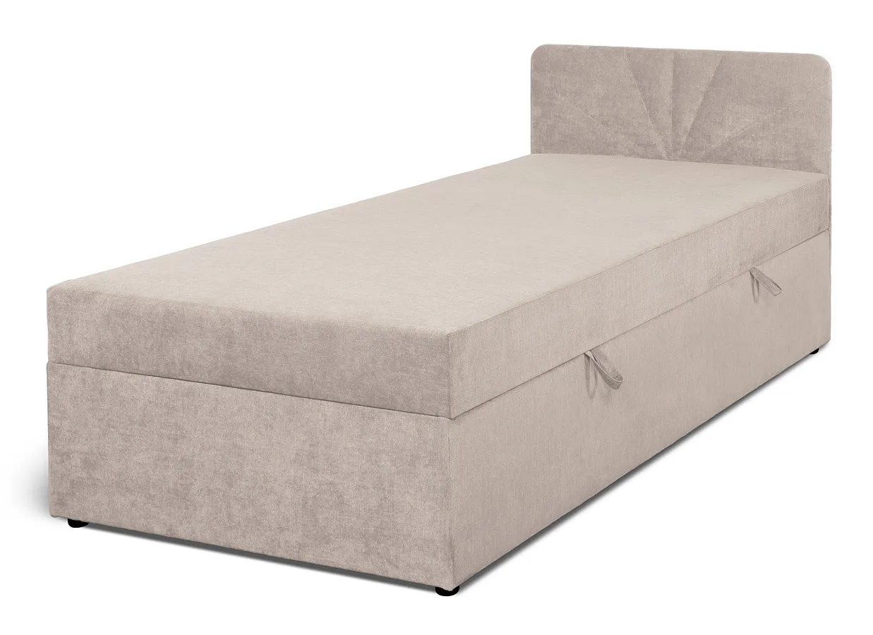 Beżowe pojedyncze łóżko tapicerowane z pojemnikiem - Juno