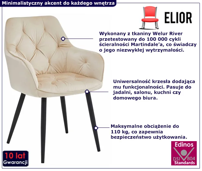 Dotyczy: Eleganckie szare krzesło welurowe pikowane - Elito
