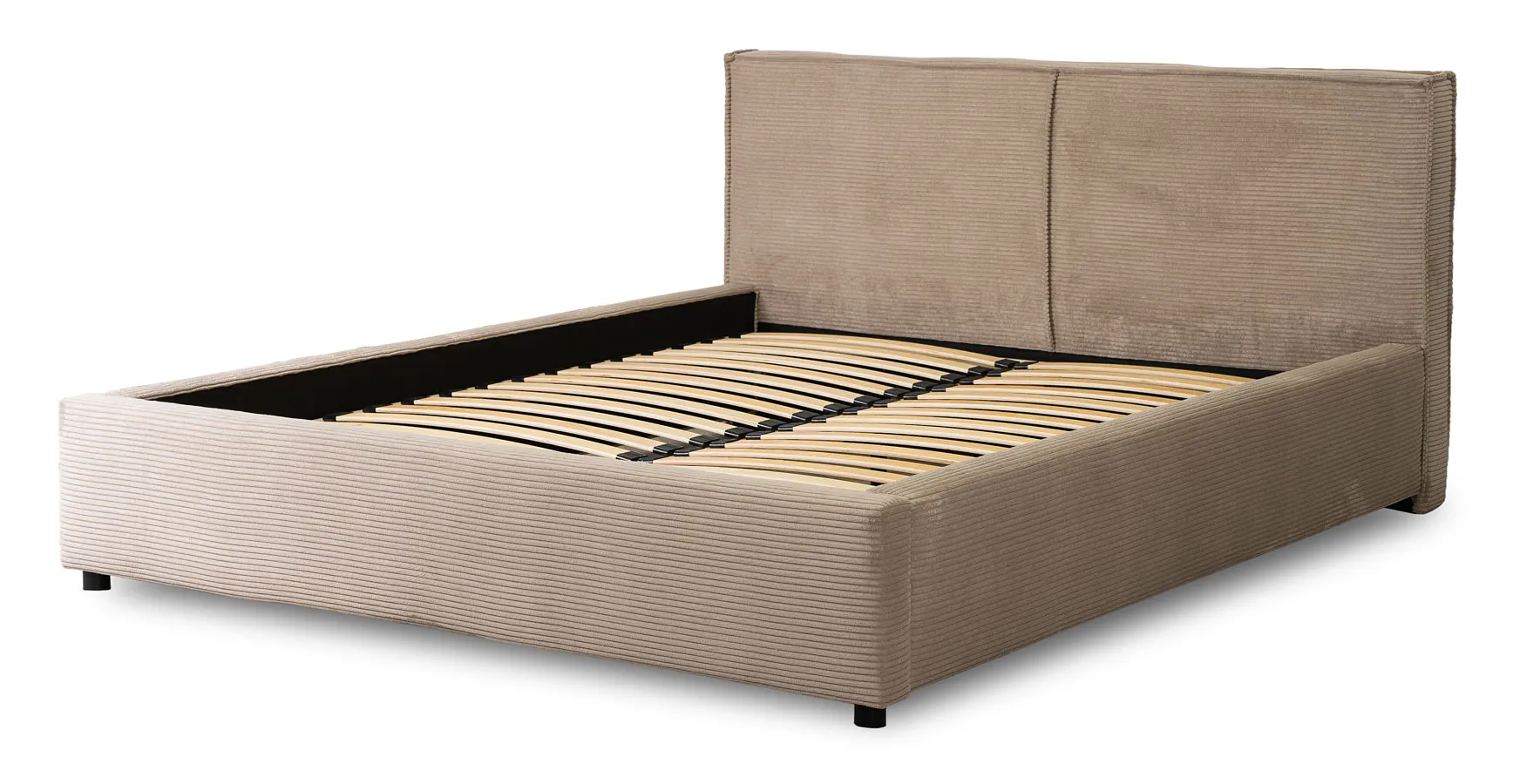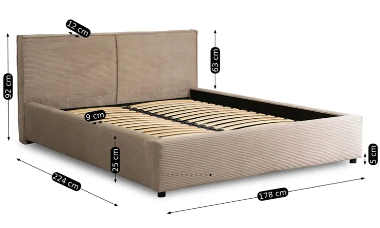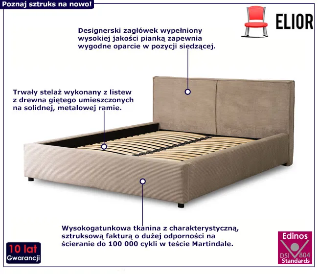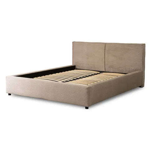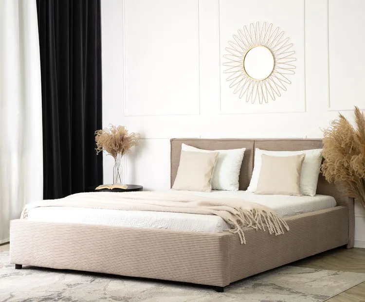 Beżowe sztruksowe łóżko z zagłówkiem 160x200 - Marnia
