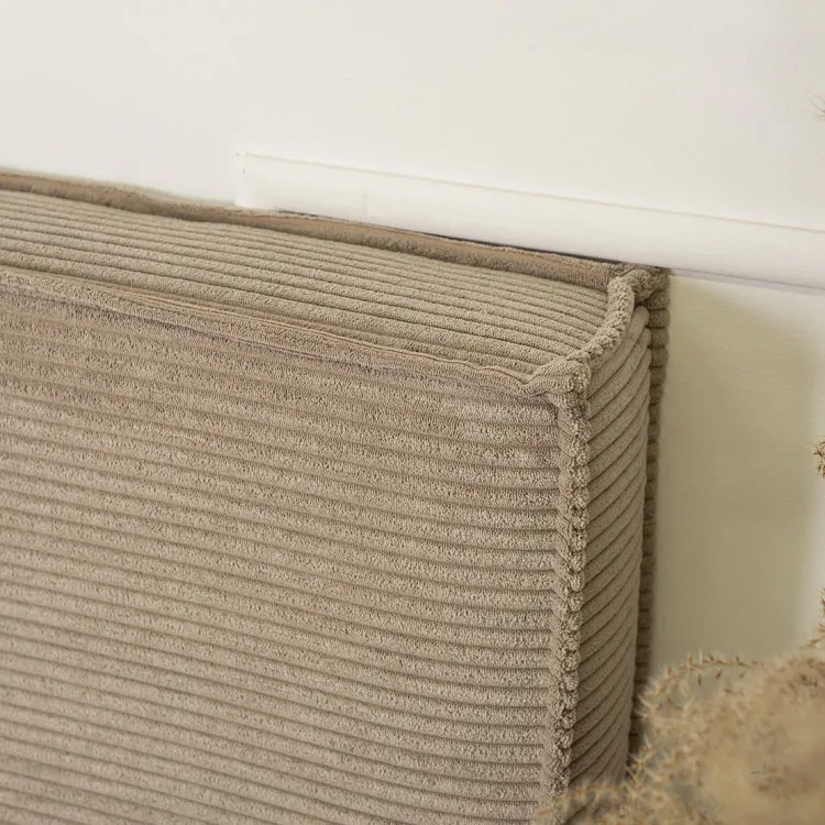Beżowe sztruksowe łóżko z zagłówkiem 160x200 Marnia