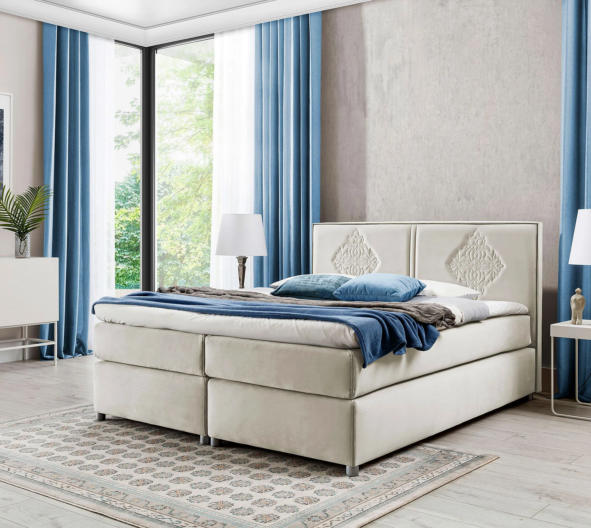 Dotyczy: Różowe welurowe łóżko kontynentalne 5 rozmiarów - Folvenna