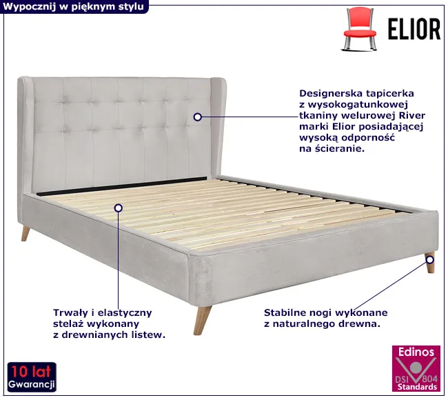 Łóżko tapicerowane Vasto marki Elior to doskonały wybór dla tych, którzy nie chcą rezygnować z luksusu na rzecz wygody. Perfekcyjne połączenie designerskiego wyglądu z wyjątkowym komfortem sprawia, że każdy wieczór staje się przyjemnością. Pozwól sobie na chwilę relaksu w otoczeniu prawdziwego piękna. Zamów łóżko Vasto już dziś za jedyne 1498 zł!