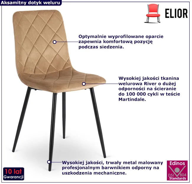 Idealne krzesło do nowoczesnego wnętrza. Beżowy kolor welurowej tapicerki dodaje luksusowego stylu. Bardzo wygodne, ergonomiczne wyprofilowanie. Polecam!