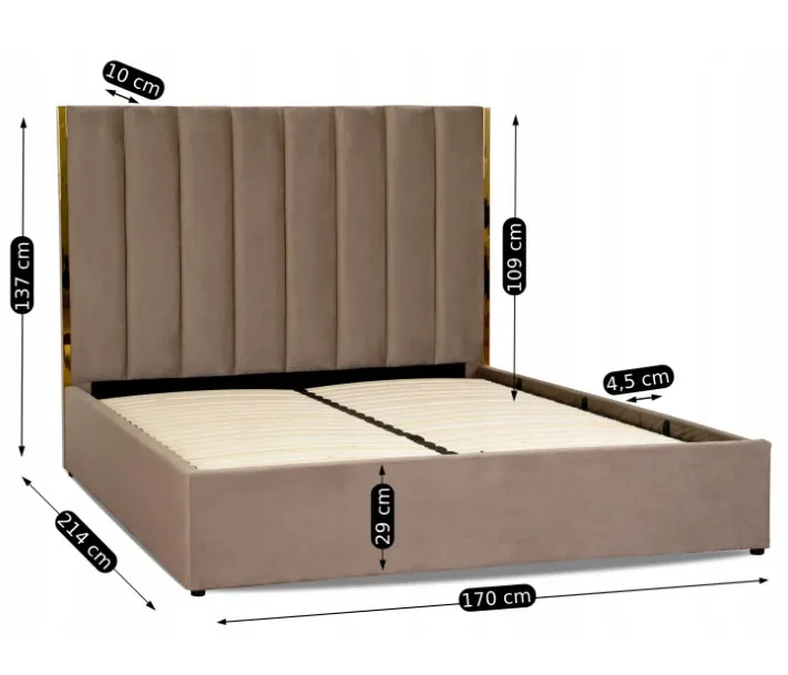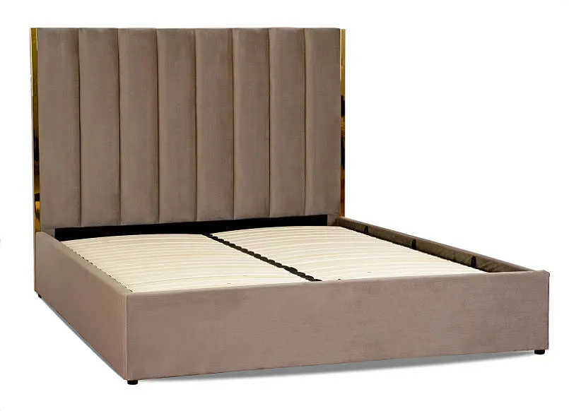 Dotyczy: Szare podwójne łóżko z zagłówkiem i pojemnikiem 160x200 - Sekros