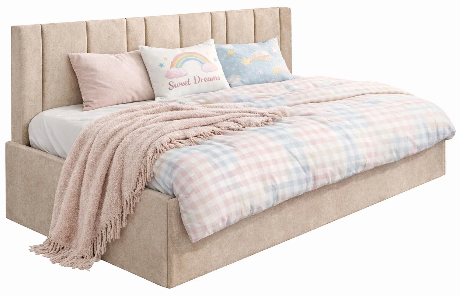 Dotyczy: Szare tapicerowane łóżko młodzieżowe Meraje 4X - 4 rozmiary