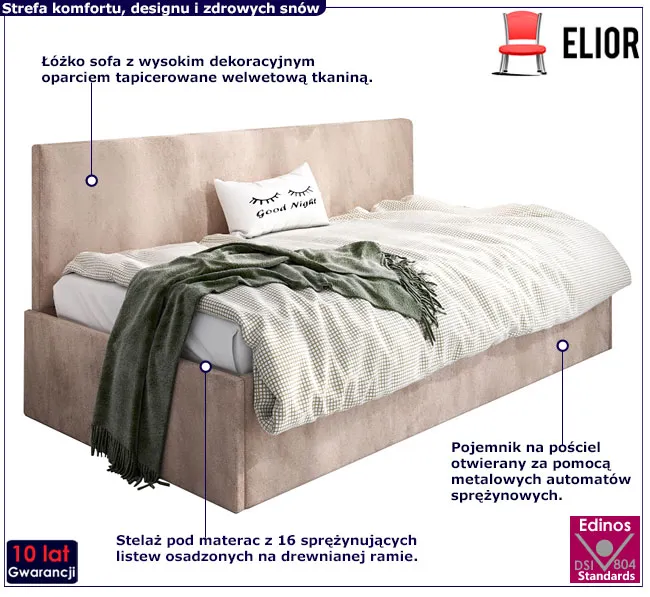 Dotyczy: Popielate łóżko sofa z oparciem Salma 4X - 4 rozmiary