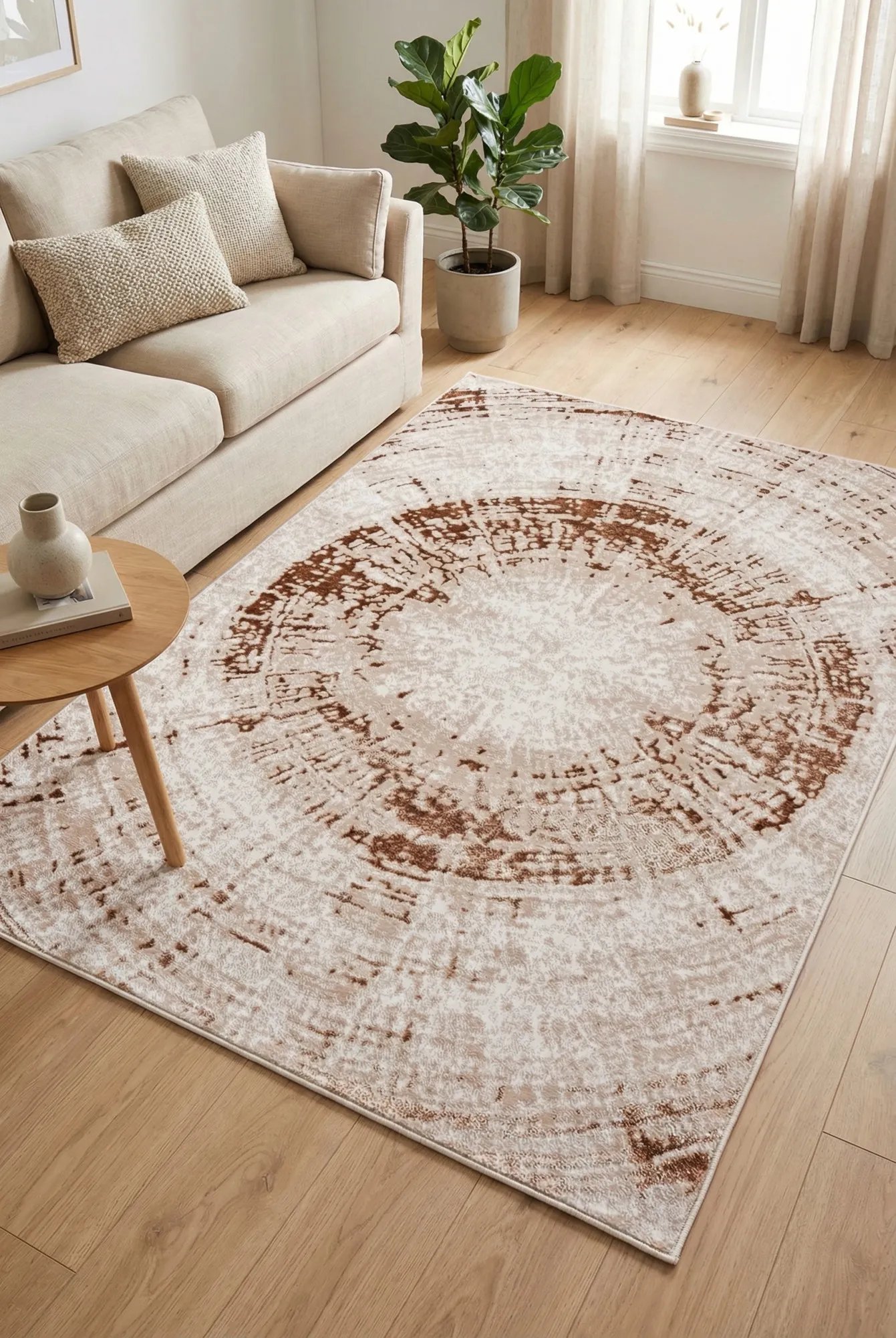 Dotyczy: Beżowo-złoty dywan w abstrakcyjny wzór - Elwo 5X