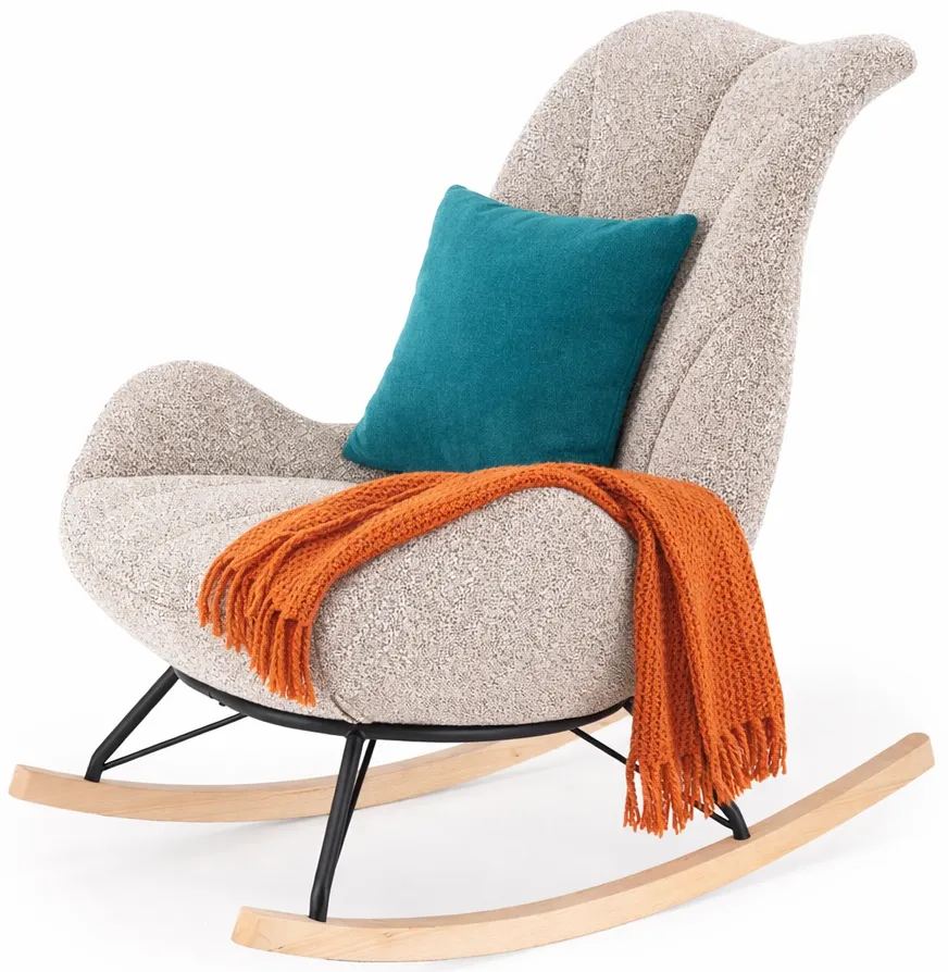 Beżowy miękki fotel bujany Arezia