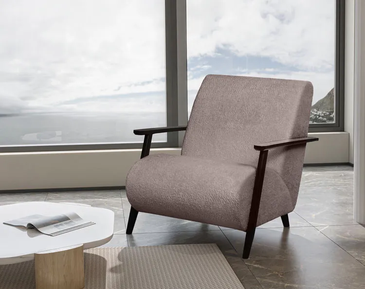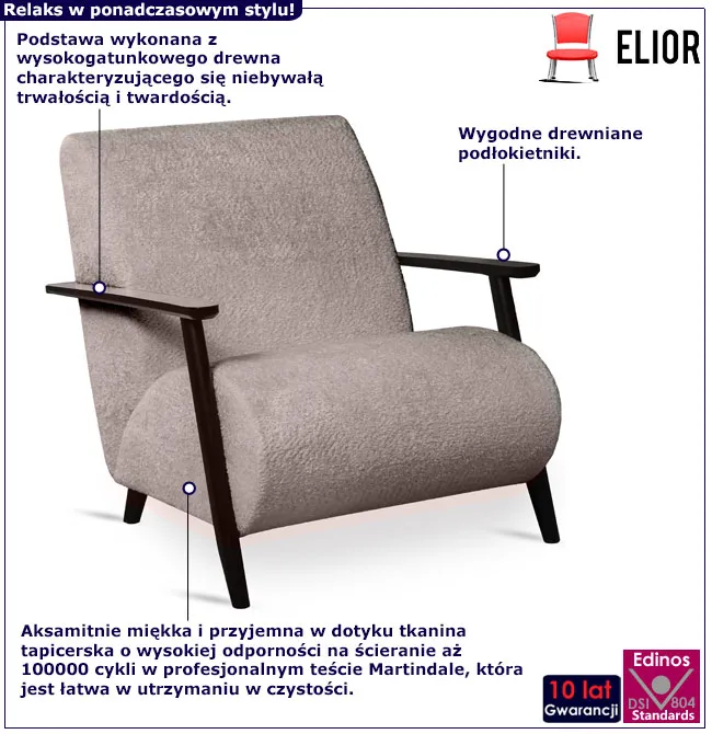 Dotyczy: Kremowy drewniany fotel tapicerowany - Merti 4X