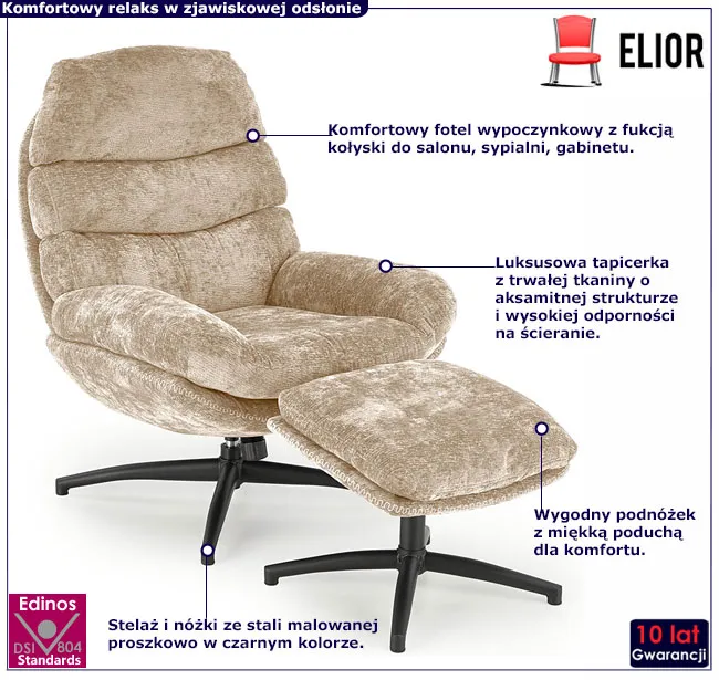 Dotyczy: Popielaty fotel wypoczynkowy z kołyską i podnóżkiem - Berser