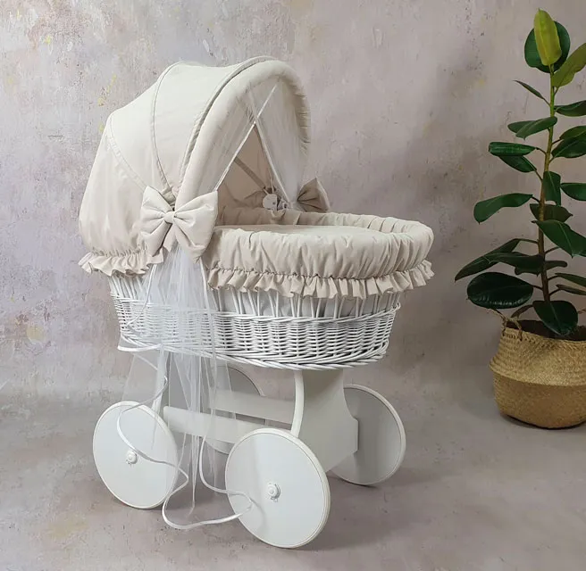 Beżowy komplet łóżeczko kosz Mojżesza z budką - Notiso 7X
