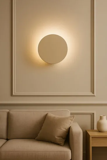 Beżowy metalowy kinkiet w kształcie koła 25 cm - J107-Fisel