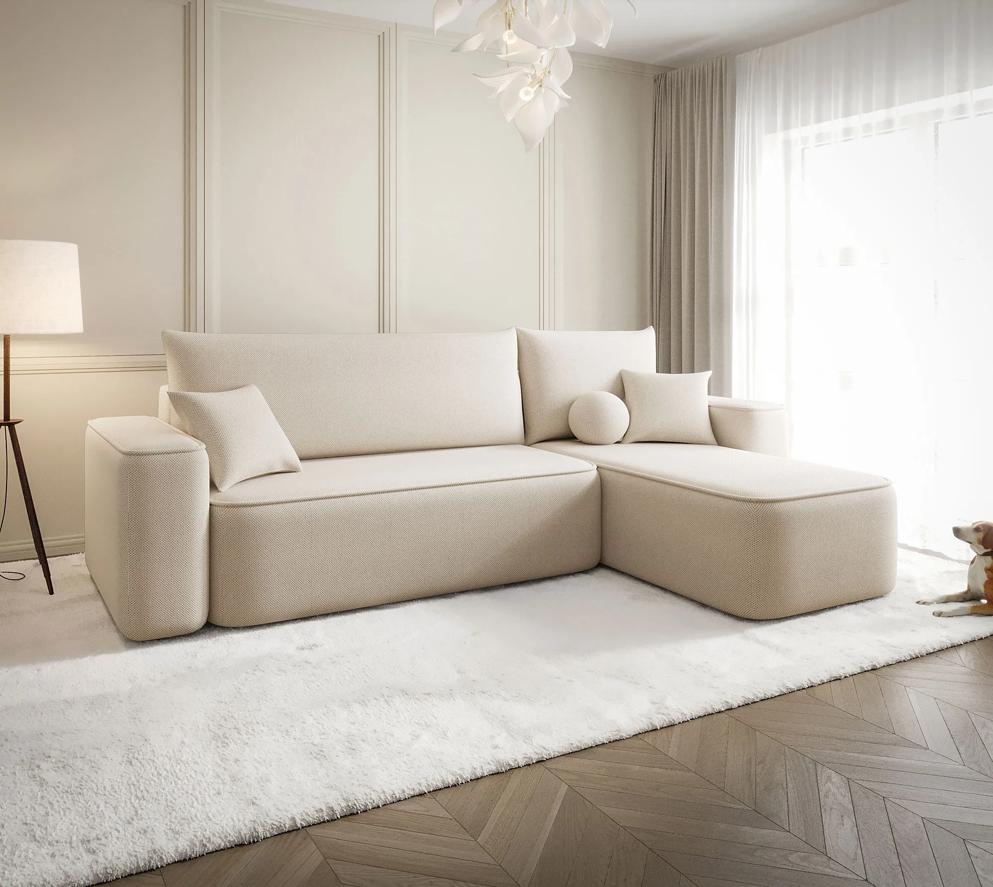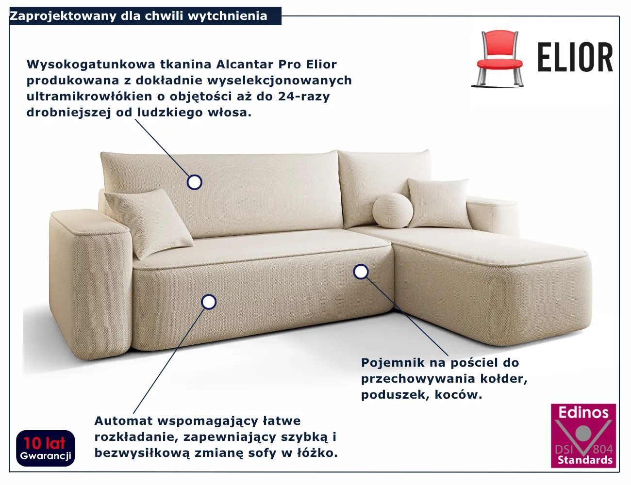 Beżowy narożnik rozkładany w kształcie litery L Mossira 3X