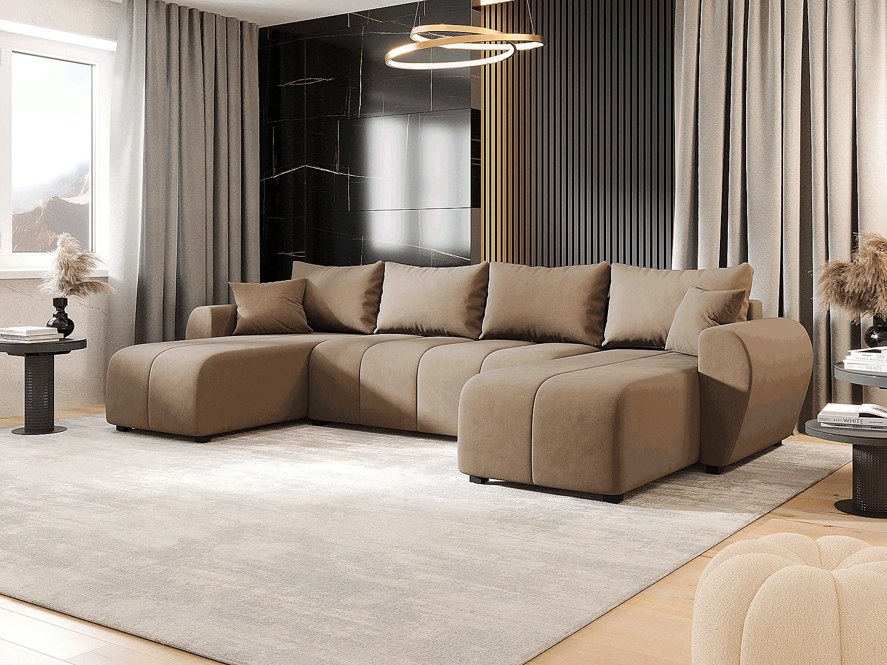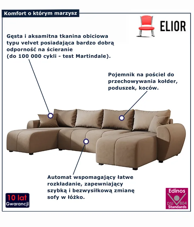 Dotyczy: Kremowy narożnik z funkcją spania w kształcie U - Aurelix 4X