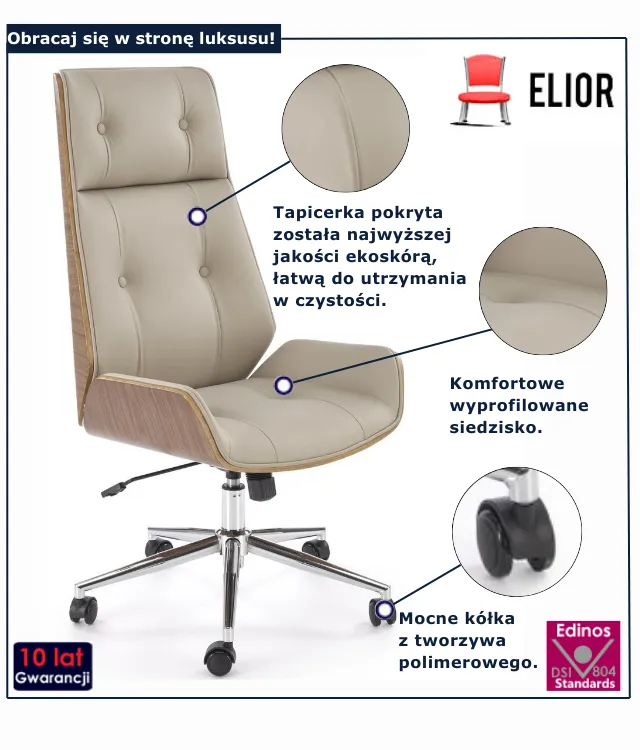 • Modny kolor: beżowy. Kliknij w link i sprawdź także inne nowoczesne fotele obrotwe w sklepie Edinos.pl. Stwórz swój praktyczny zestaw mebli.