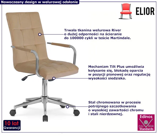 Beżowy fotel biurowy welurowy Vita
