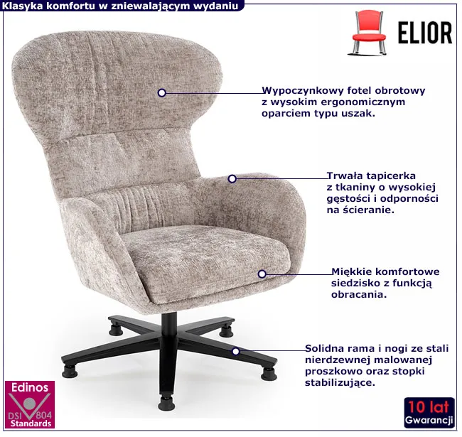 Dotyczy: Popielaty wypoczynkowy fotel obrotowy do pokoju - Riser