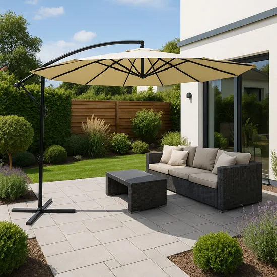 Dotyczy: Szary okrągły parasol na taras - Sunbrella