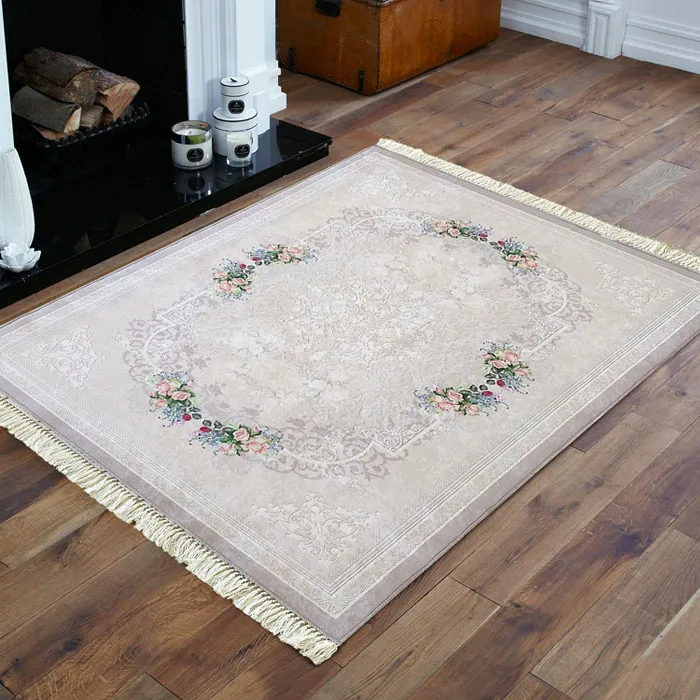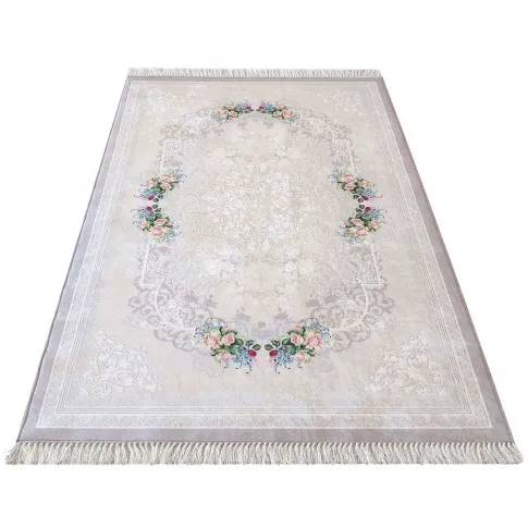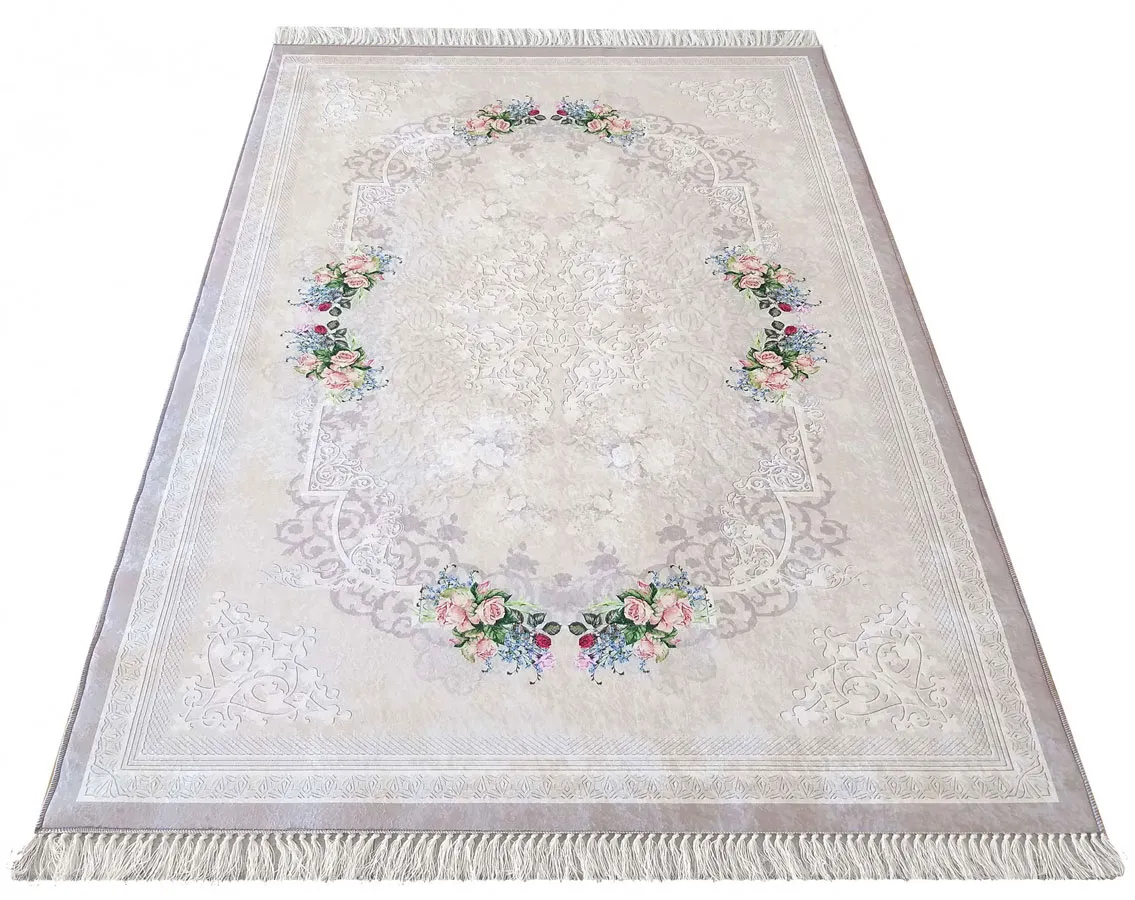 Beżowy prostokątny dywan w kwiaty - Claris