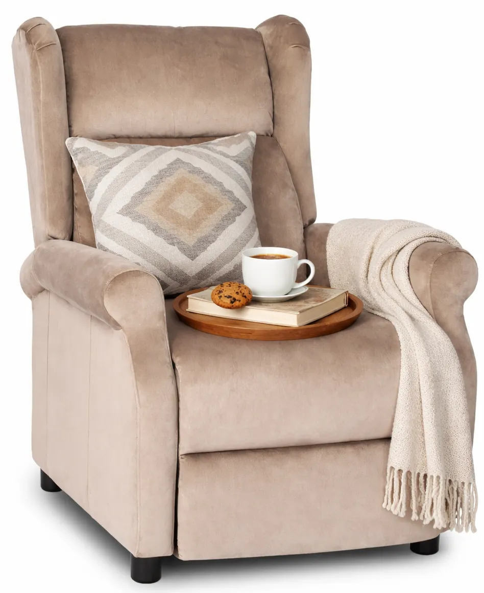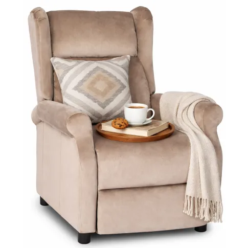 Beżowy welurowy fotel wypoczynkowy rozkładany Ferro