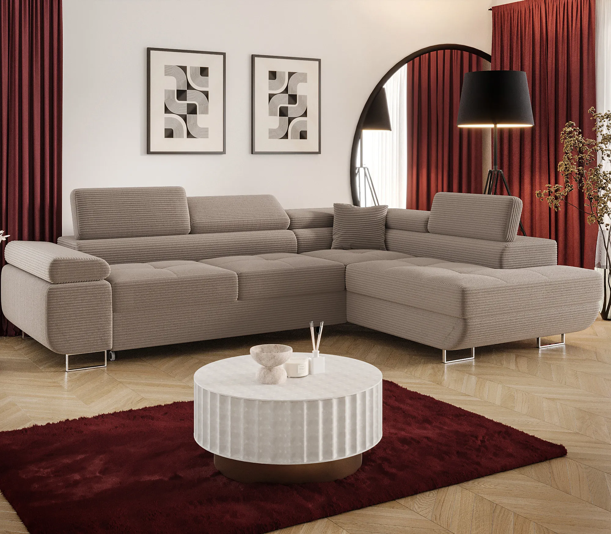 Dotyczy: Czarny sztruksowy narożnik tapicerowany - Tavesso 4X